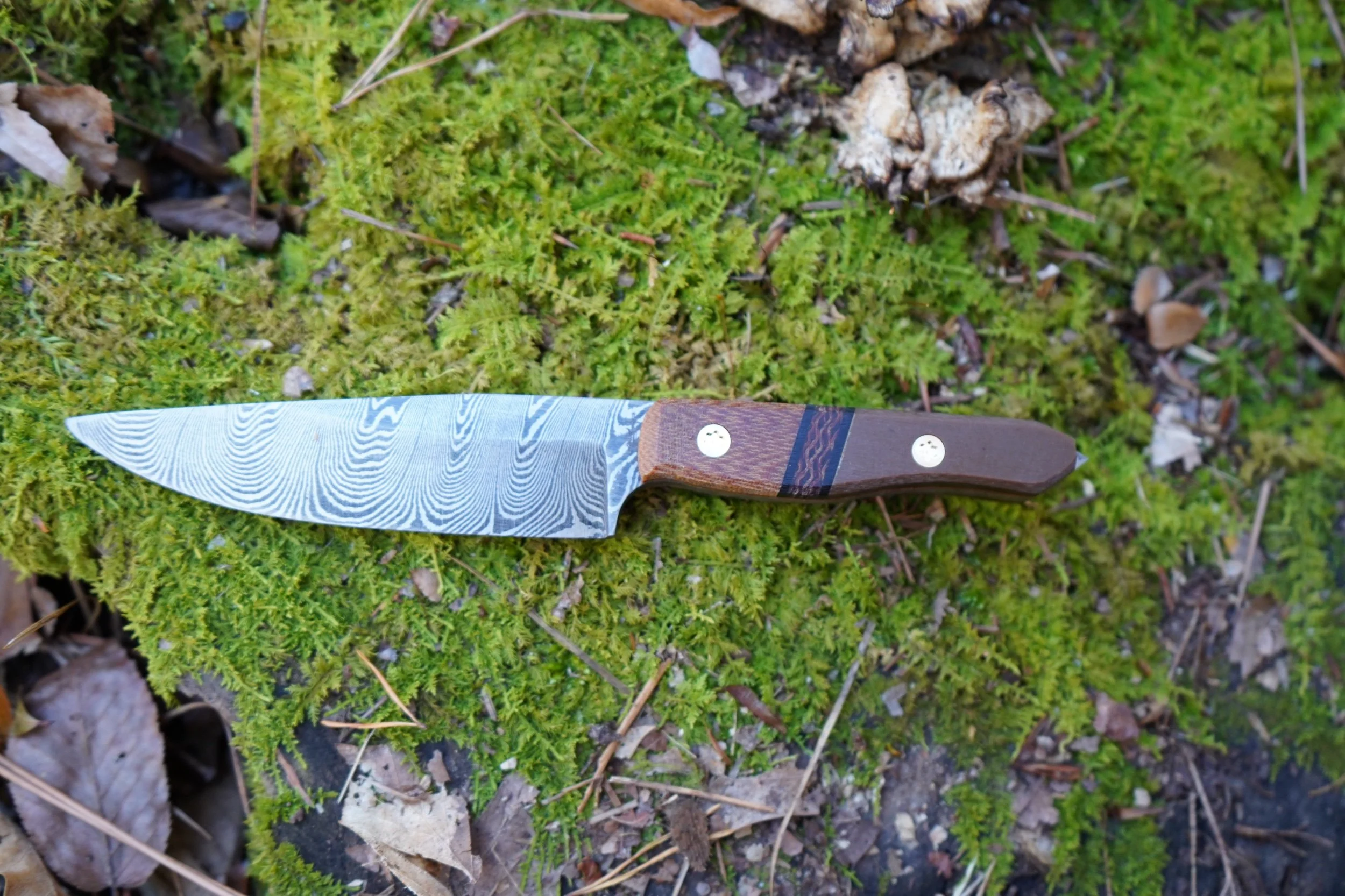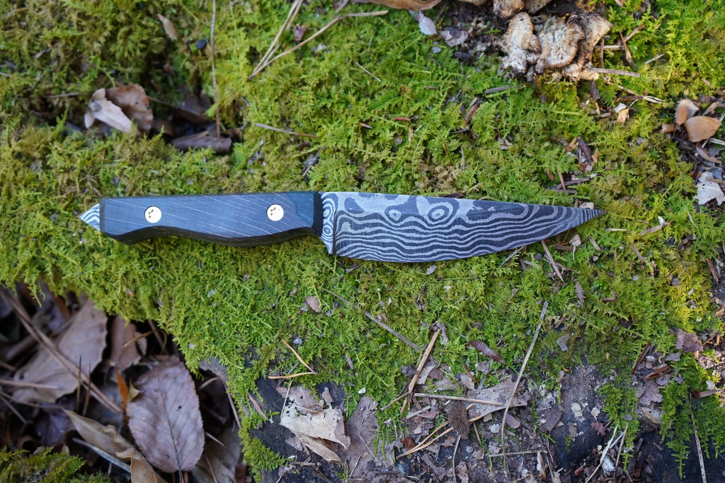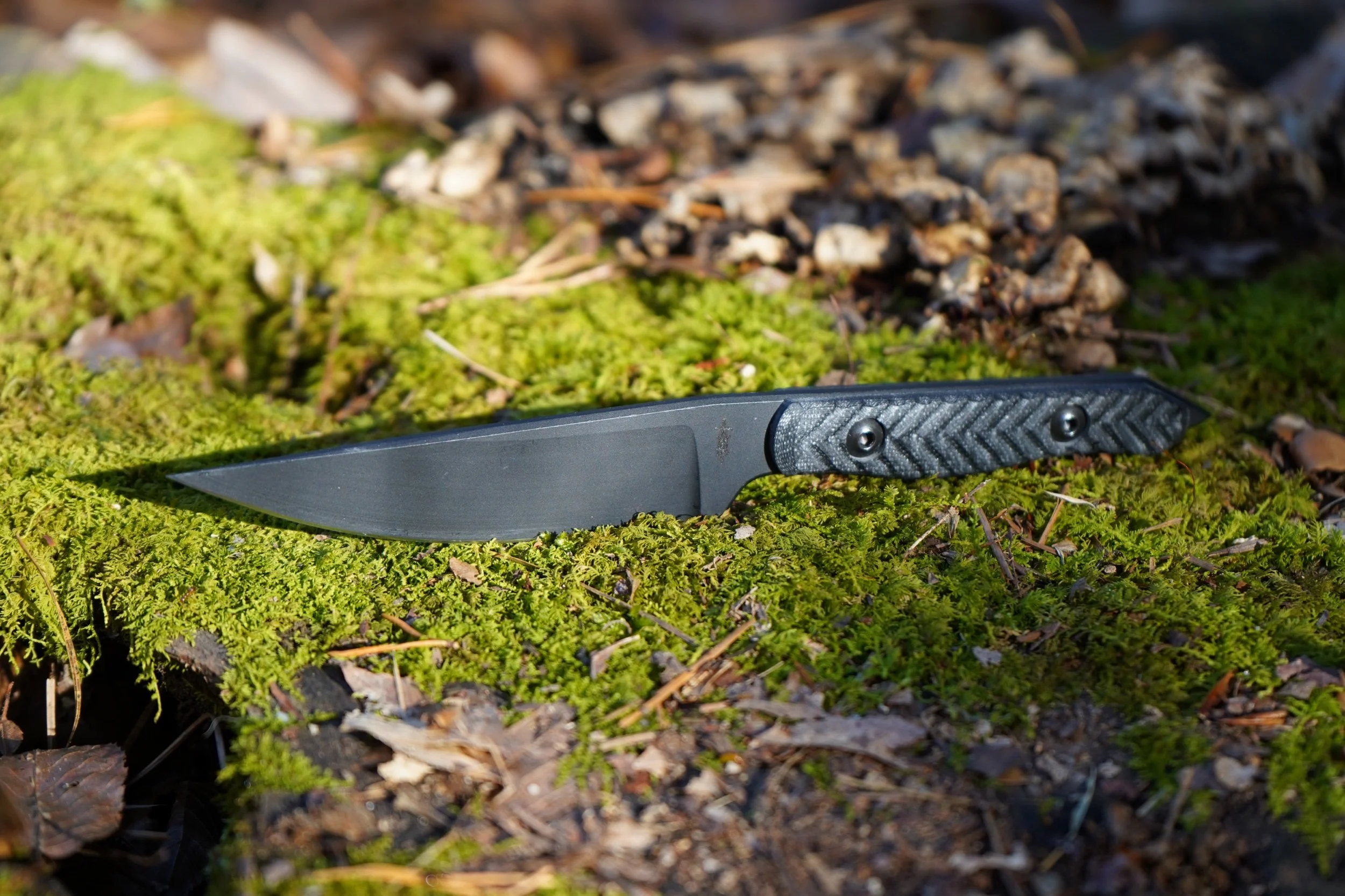 80CRV2, 7.5” Overall Length, .154” Thickness, Black Cerakote, Blue/Black Micarta Handles, Kydex Sheath Included.